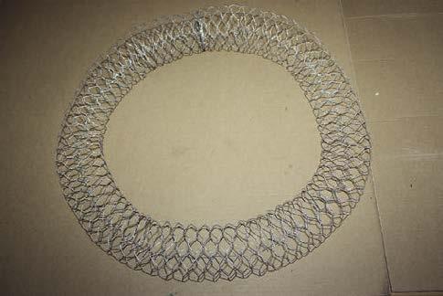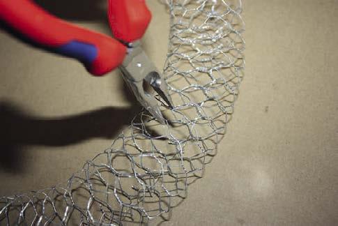 5. Potom kleštěmi stáhneme jednotlivá oka pletiva. Celkově tím velikost kruhu zmenšíme, avšak bude působit robustnějším dojmem. 1. 2.