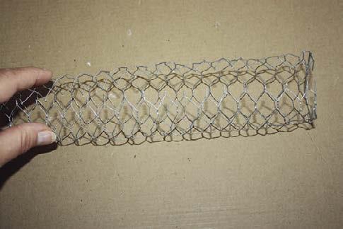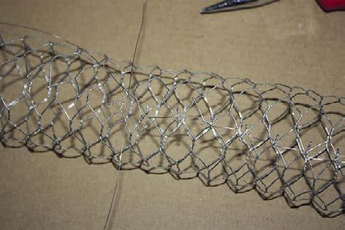 2. Připravený pruh pletiva podélně ohneme tak, aby uvnitř vznikl dutý prostor. Dáváme přitom pozor, abychom se nezranili.