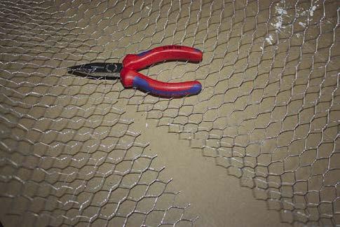 3. Ke spojení pletiva dobře poslouží tenký drátek, který postupně provlékáme jednotlivými očky pletiva a stahujeme.