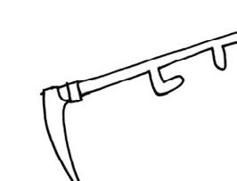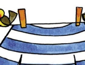 Ústa otevřená, vypláznutý jazyk se pohybuje střídavě od jednoho koutku ke druhému „Jazýček seká kosou trávu.“