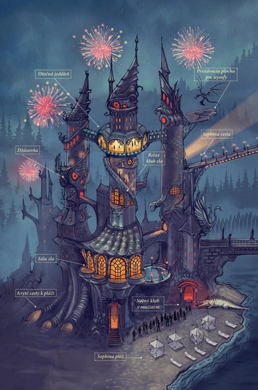 6) SÁLA ZLA: Riadili sme sa Vašimi poznámkami k „ I. Výročnému nebálu zloduchov“, aby sme získali lepšiu predstavu o v ylepšeniach v Sále zla. Zo stropu temného ako nočná obloha budú visieť lustre s čiernymi diamantmi, vitrážové okná budú zobrazovať Vaše najväčšie úspechy v boji s d obrom.