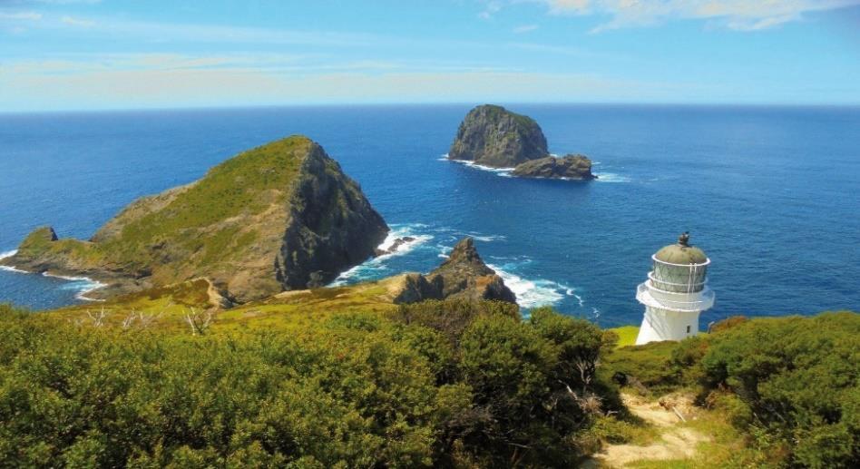 HoleintheRock,ostrůvekseskalníjeskyní,kteroumohouproplout iloděsnávštěvníky.VečernaCapeBrettHutjistězůstanevpaměti každémucestovatelipoNovémZélandu.