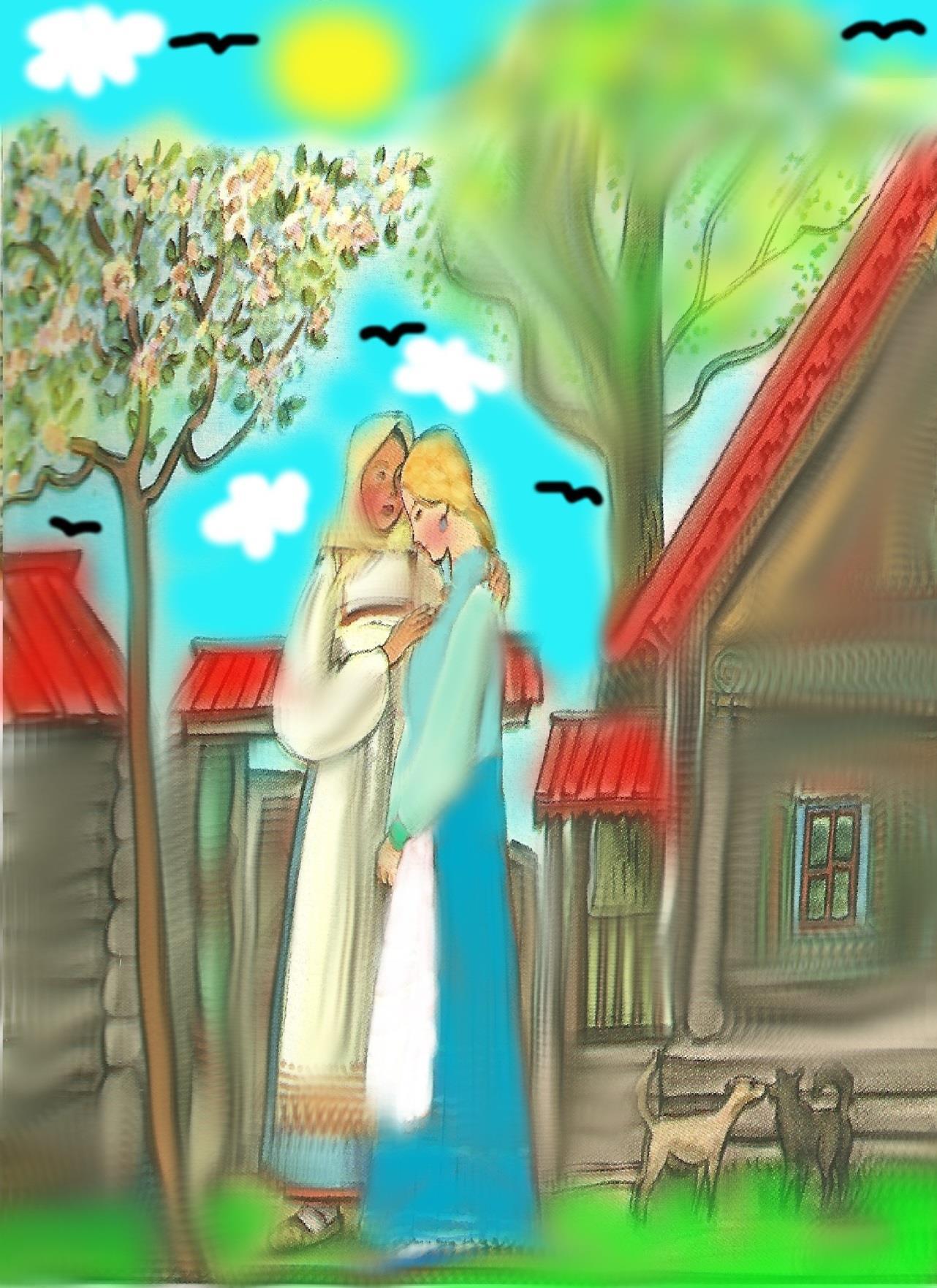 Macechanevlastnídceřiúkoldala,abykravičkunapastvuvyhnala. Kravičkasetáže:„Proč,panenko,pláčeš?“