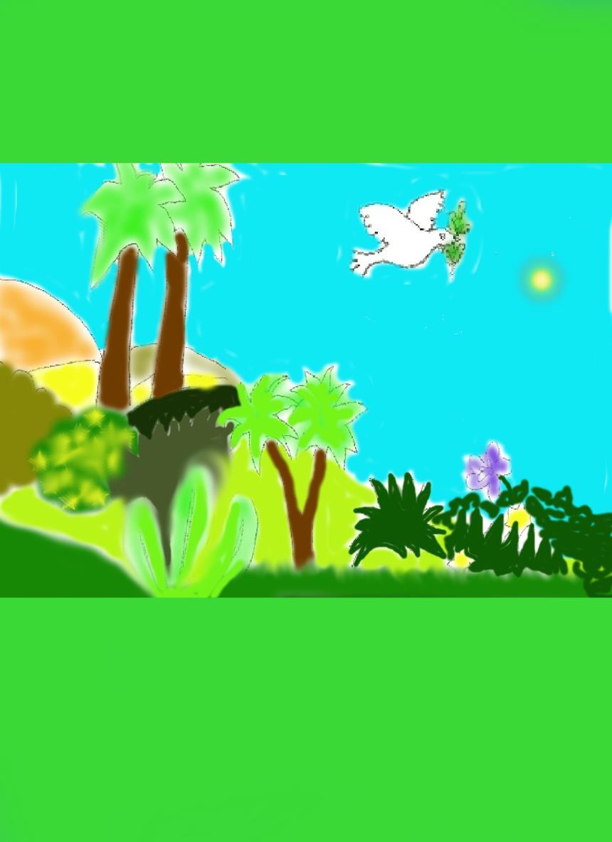 Vyletěla holubička potřetí a přinesla hned vzápětí v zobáčku čerstvou zelenou větvičku.“