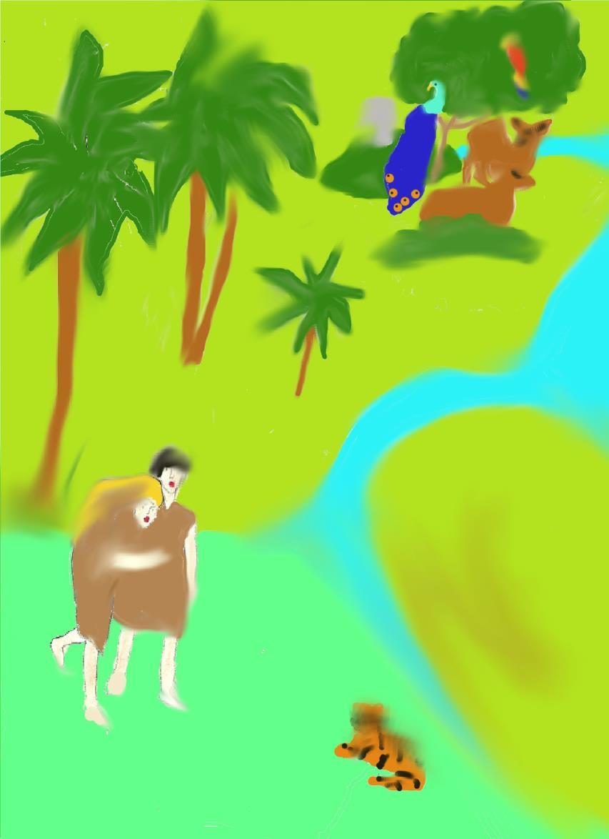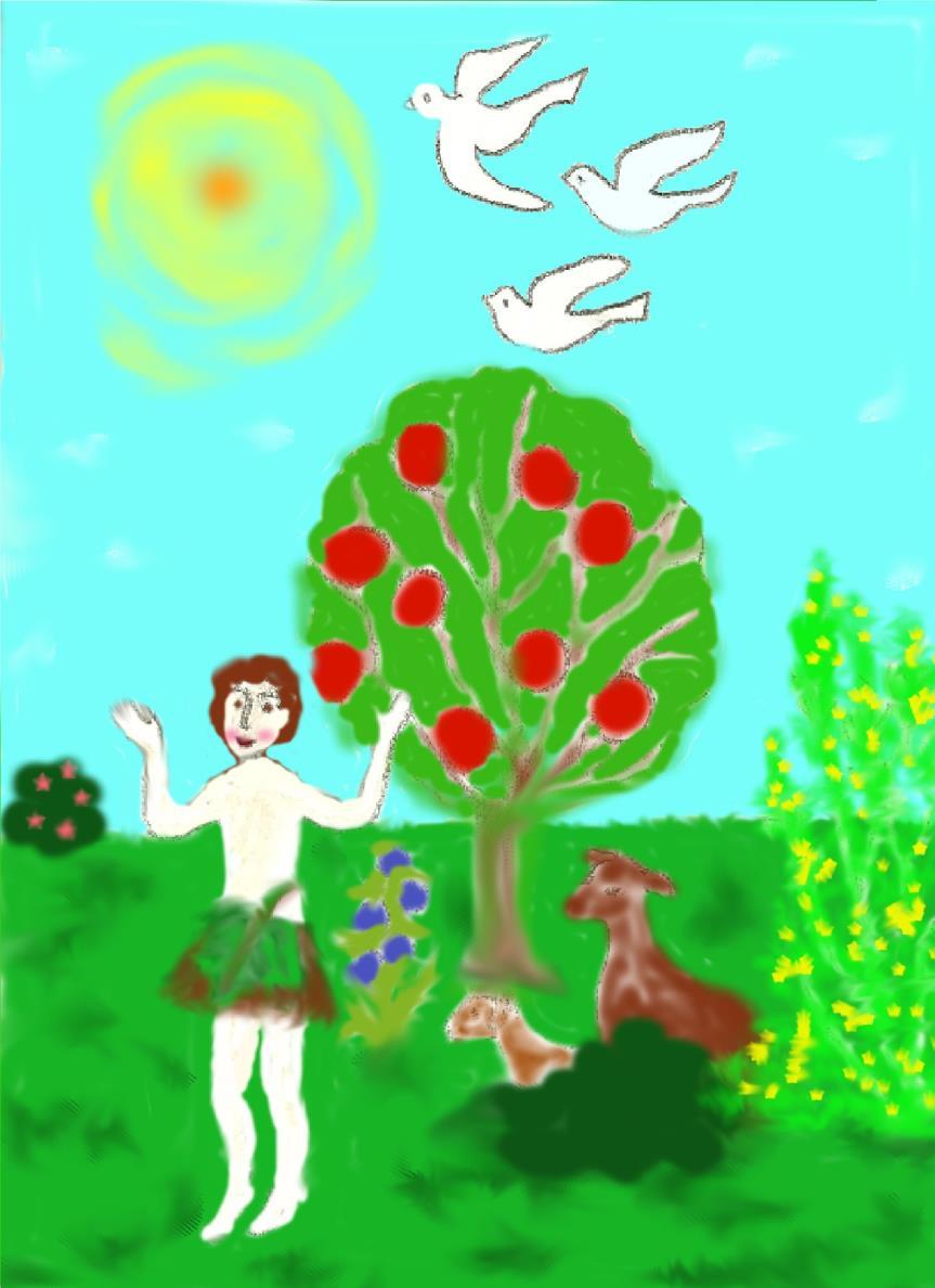 Svět je nyní příjemný, plný zvířátek, přijde vrchol stvoření –Adam, muž, člověk.