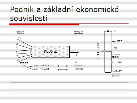Obrázek 1 Základní ekonomické souvislosti uspořádanosti podniku a jeho efektu