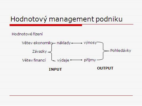 Výstup z podniku má v hodnotovém řízení podobu buď výnosů - 1. větev, nebo příjmů - 2. větev (viz Obrázek 2).