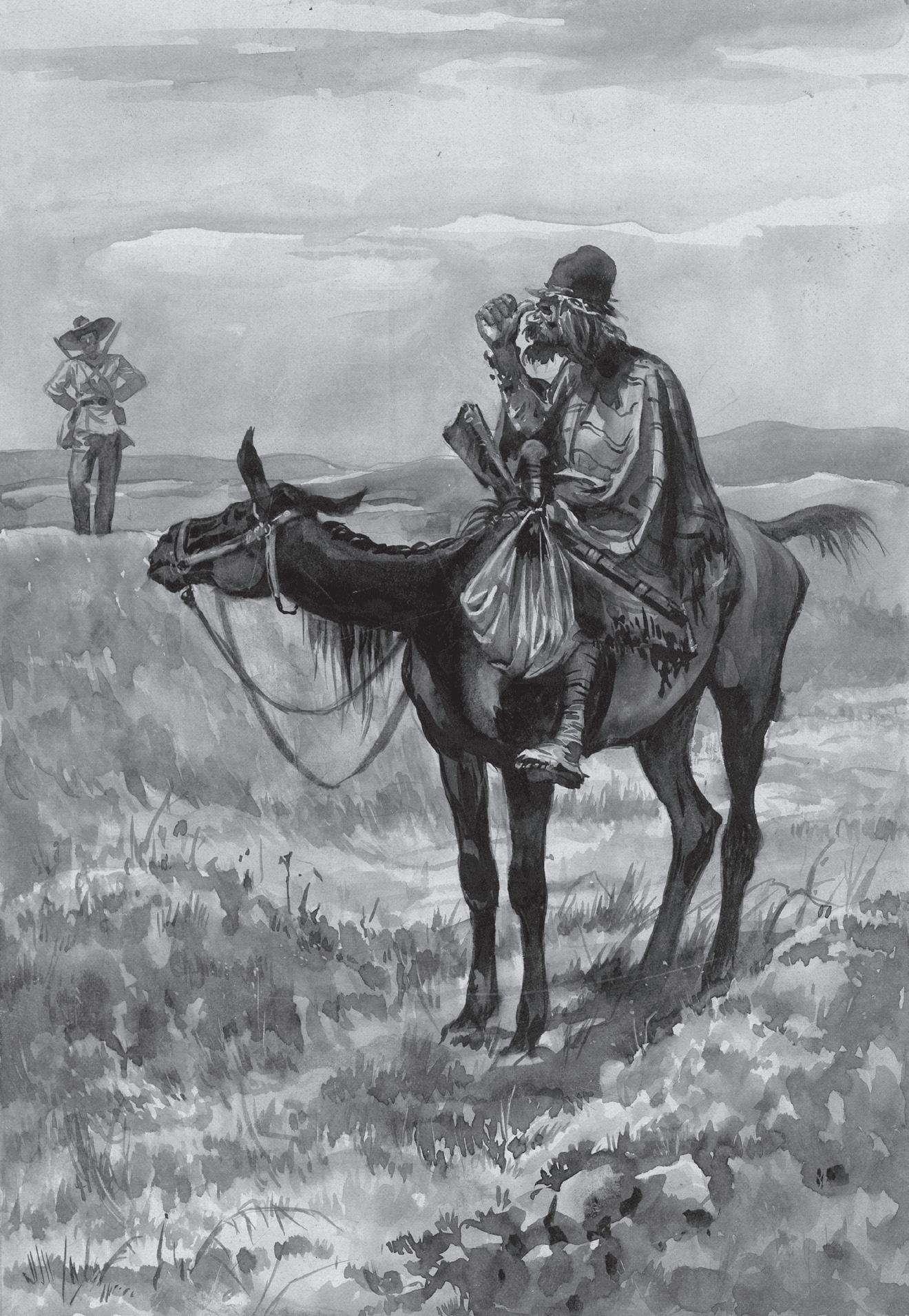 Za jiných poměrů nebo jako nováček na Západě bych se při pohledu na jezdce i koně jako každý jiný zasmál, teď mi ale ten muž přes svůj zvláštní zjev připadal spíš jako jeden z těch westmenů, jejichž cenu člověk pozná teprve později. Neměl asi tušení, že má za sebou čtyři strašné nepřátele prérijního lovce, jinak by sotva jel tak zvolna a bezstarostně a ani jednou se neohlédl.