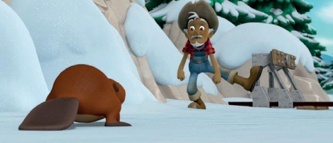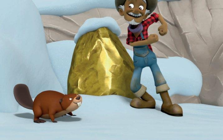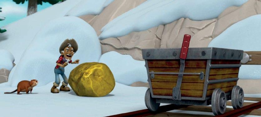 „Díky, že jsi mi pomohl odhrabat ten sníh, kamaráde,“ poděkoval bobrovi a potom opatrně naložil zlatý nuget do důlního vozíku.