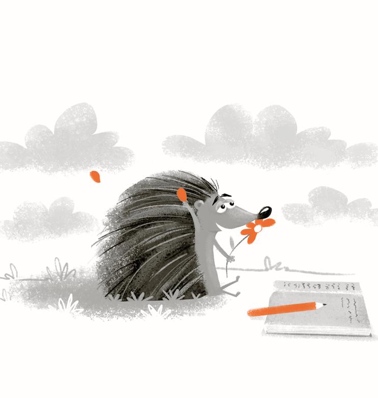 Během dne je poněkud spavý a zpomalený. Snílek bloudící myšlenkami v oblacích, ale v noci, kdy jiní spí, není v pátrání, sledování, neslyšném plížení a odhalování podvodníků a lupičů lepší odborník než on. Ve volných chvílích píše hororový román pojmenovaný Tajemství Temného lesa. Jiní ježci se jeho literárním zálibám vysmívají, ale on si z toho nic nedělá.
