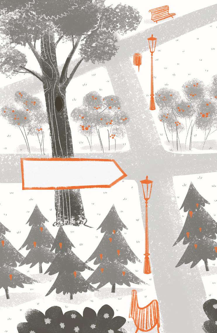 Když přijdete do parku časně ráno a dobře se tam rozhlédnete, možná si všimnete rudé veverky uhánějící na koloběžce. Takový pohled tady není nijak výjimečný, to jen slavný detektiv Alfréd Veverčák spěchá do práce.