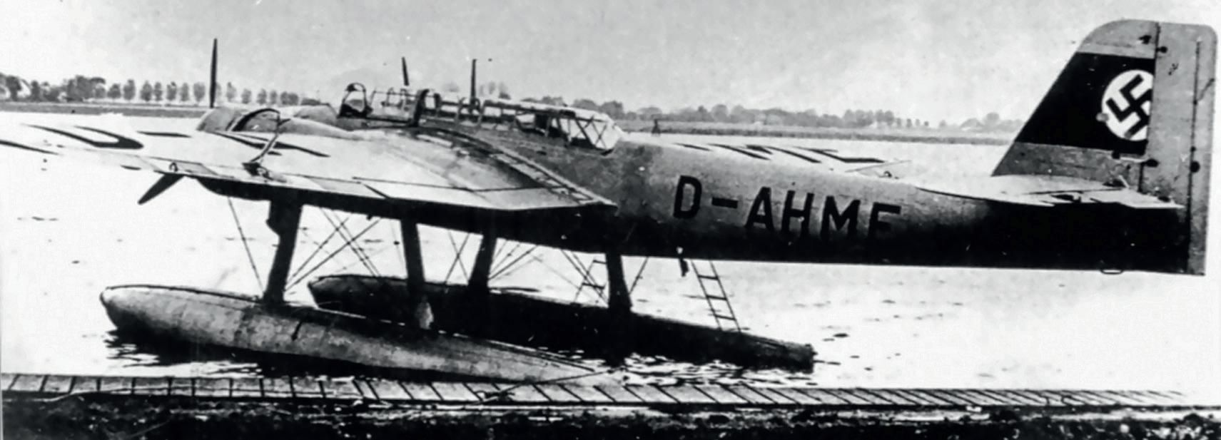Heinkel He 115 V4 ( W. Nr. 1977, D-AHME ) ve své původní podobě, s přepracovanými ocasními plochami. Později obdržel také nový nosný systém plováků