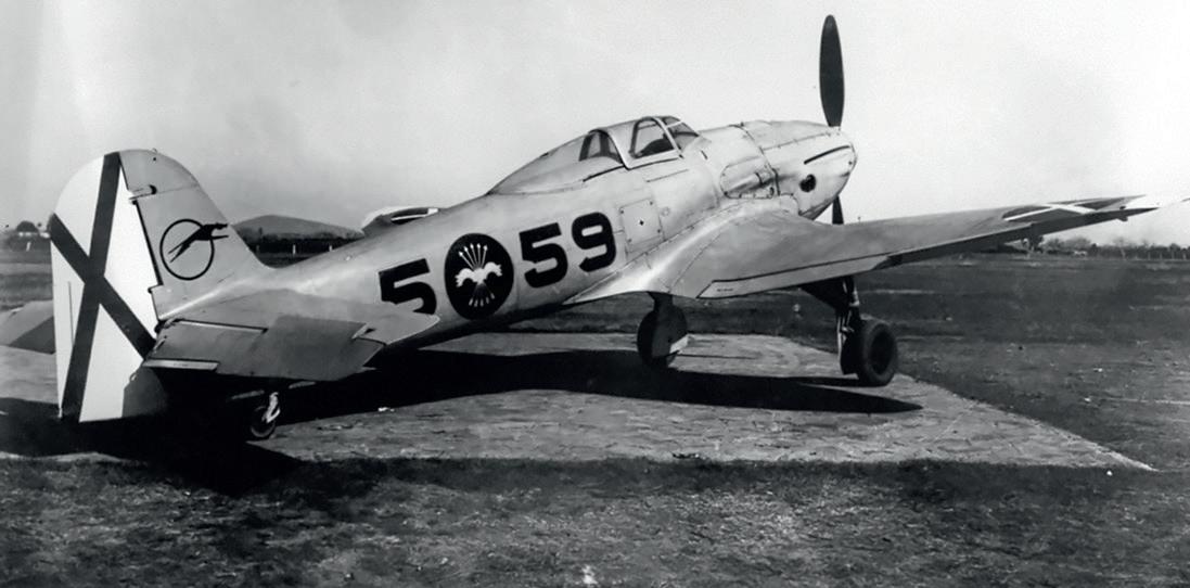 He 112E ( 5 ○ 59 ) ze stavu 1a Escuadrilly Grupa 27 a působící během druhé světové války z marockého letiště Tauima / Nador. Letoun byl vyřazen během roku 1944