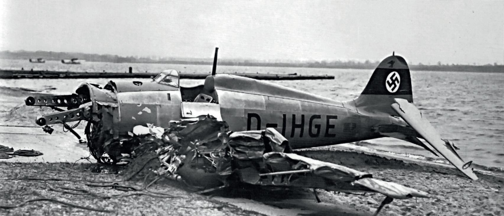 Smutný konec druhého prototypu He 112 V2, který se zřítil během letu v Travemünde 15. dubna 1936, poté, co jej Heinkelův zkušební šéfpilot Gerhard Nitschke nedokázal vyvést z nekontrolovatelné vývrtky. Letec se zachránil pod vrchlíkem padáku, prototyp však byl zcela zničen