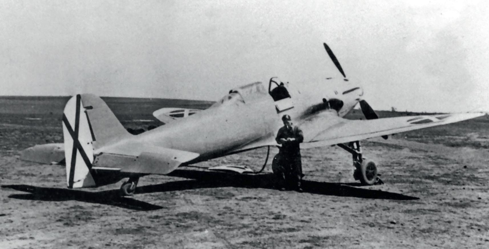 Prototyp Heinkelu He 112, s největší pravděpodobností He 112 V3 nebo V6 ( 5-1 ). Stroj je prezentován v podobě, v jaké se ve Španělsku vyskytoval na konci roku 1936 ( nesl třílistou vrtuli )