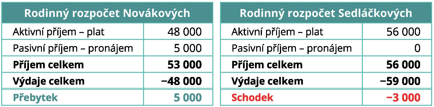 Studentům se předloží tabulky se základním rodinným rozpočtem dvou rodin, který naleznete v pracovním listě na konci kapitoly.
