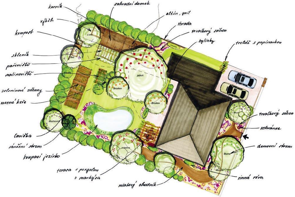 po papíře akreslím projekt. Projekt zahrady je tou nejkrásnější mapou na cestu životem. Životem v zahradě, v ráji plném jídla, zdraví a krásy. A já tento um předávám dál a učím druhé. Každý si dokáže takový projekt stvořit. Díky svému nakukování přes ploty vidím, jak malinko stačí, aby neútulná a prázdná zahrada dostala nový koncept, aby se stala krásnou zahradou plnou zákoutí a krásných výhledů, kde se dá na každém kroku něco uzobnout a denně natrhat kytice květin. Každá zahrada může být džungloidní přesně podle vás.