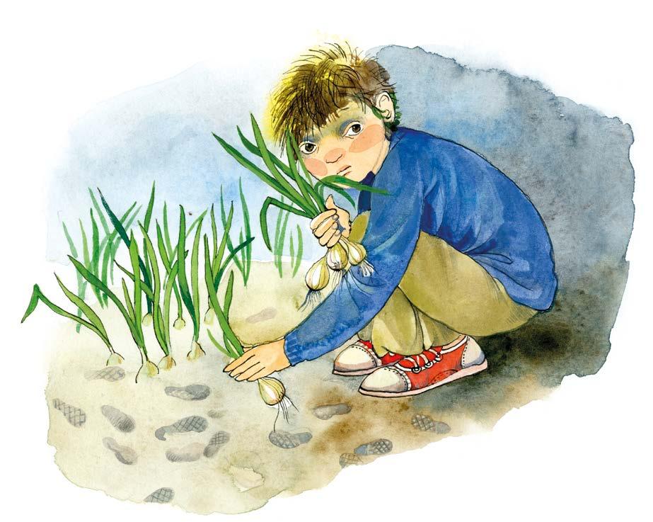 Babičce visely na nose brýle. Zadívala se na vnuka zpytavě. Dosud si nevšimla, že by ho zajímala zelenina! A teď zírá do záhonu, jako by chtěl výhonky spočítat.