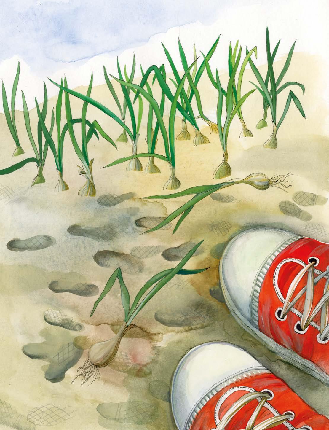„Co tam tak dlouho děláš? Vytáhni cibulky hned zkraje, do záhonku nešlap, čerstvé listy jsou křehké!“