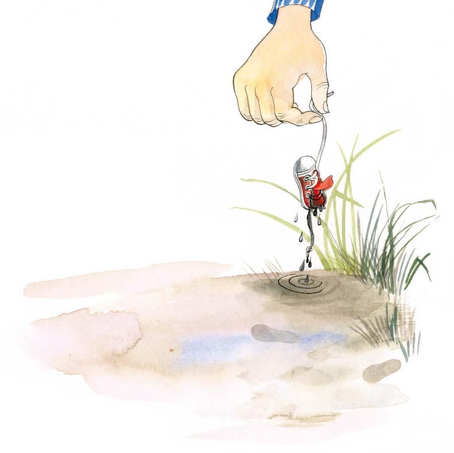Karlík bloumal po zahradě. Déšť zesílil. Už to nebyly kapky, z nebe padaly na zem hotové provazy vody. Záhonek se zeleninou dostával zabrat. Kaluže se zvětšovaly a stopy v nich nemilosrdně mizely. Pokud chce vědět, kam majitel botičky pospíchal, musí po stopách hned vyrazit, než je voda zničí!