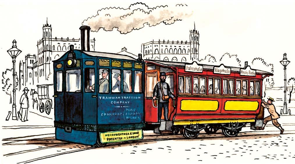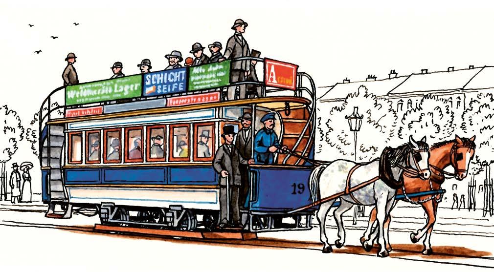 Když František Antonín Gerstner stavěl koněspřežní železnici z Českých Budějovic do Lince, dostal nápad, že by podobná železnice byla vhodná i pro města. Aby ukázal svůj nápad v praxi, postavil v roce 1840 ve vídeňské čtvrti Brigittenau koňskou železnici v délce 1,8 km. Tato trať spojovala město se zábavním parkem Colosseum. Řešení, které Gerstner navrhl, bylo velmi zajímavé, protože umístil koně mezi dva vozy. Tramvaj měla 1. třídu, kde byly pérová sedadla, a 2. třídu s tvrdými sedadly. Samozřejmě že rozdíl byl i v ceně 10 krejcarů za 1. třídu a 6 krejcarů za 2. třídu. Provoz na této lince trval dva roky a působil spíše jako atrakce.