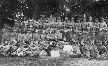 Příslušníci náhradního praporu 91. pěšího pluku rakousko-uherské armády v rakouském Bruckneudorfu
