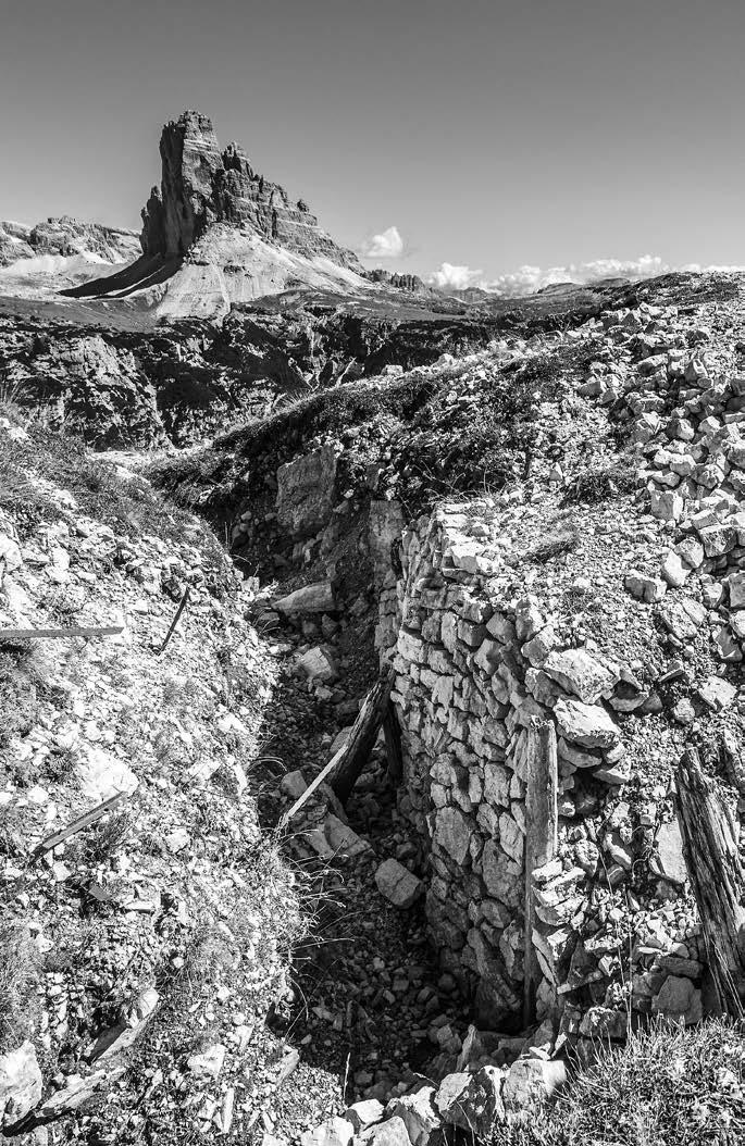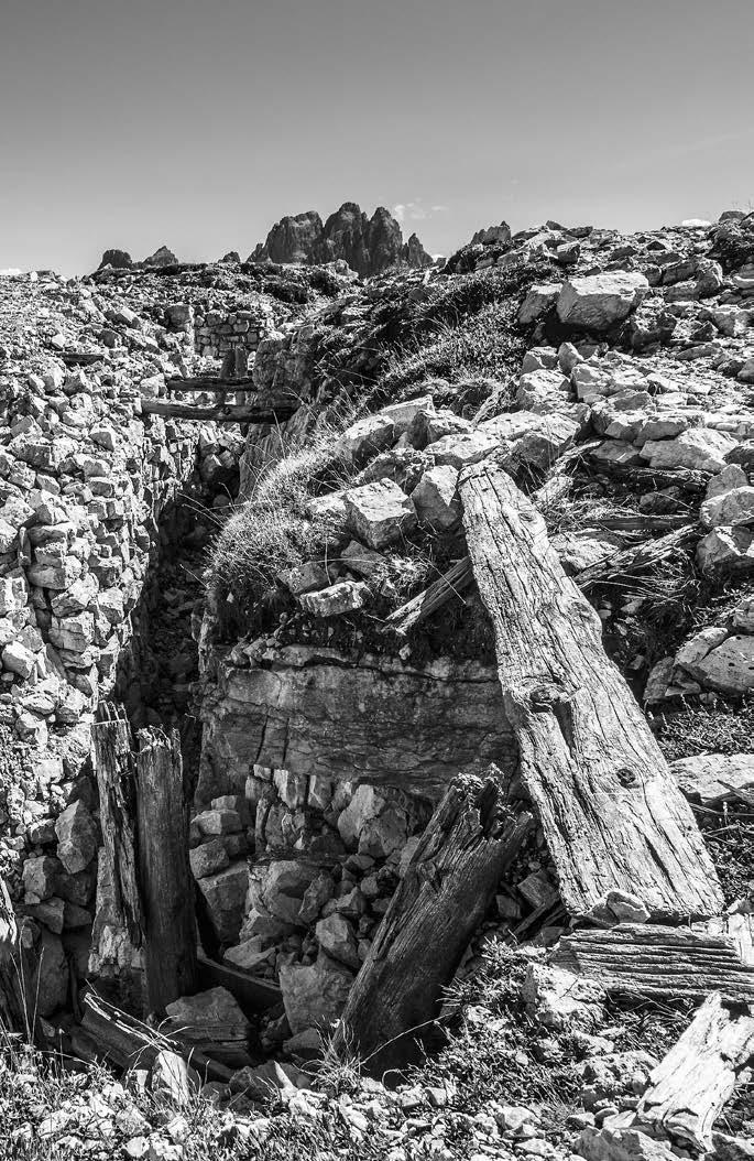Ve stejných místech Josef Novotný zažil zasypání v zákopu: „Náhle těsně za našimi hlavami zasténal jeden těžký granát, zaslaný nám z rozžhaveného italského patnácticentimetrového děla, a nežli jsme si mohli uvědomit, není-li tato vteřina naše poslední, uhodila patnáctka plnou trefou asi čtyři kroky od nás dále do zadní stěny zákopu. Více jsem nevěděl, neboť jsem byl omráčen a takřka již na cestě do říše věčného stínu. Ale po chvíli probíral jsem se z bezvědomí, osleplý a hluchý explosí, zalknutý kouřem a zasypán po pás kamením, které svalilo se na nás z rozvráceného zákopu a krytu,“ popisoval.