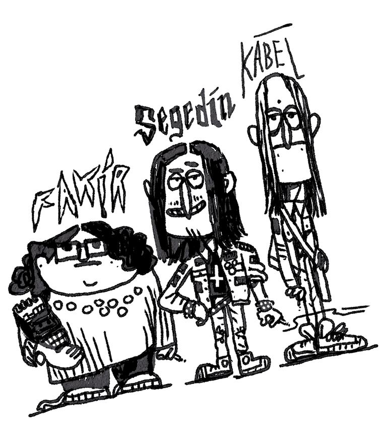 Segedín si mě ledabyle přeměřil. Začal jsem se dusit dýmem z cigarety a strašně jsem se rozkašlal. Segedín a ti zbylí dva se na mně královsky bavili. Oni byli už úplně jiná liga než my dva holobrádci. Segedín nosil mastné vlasy až pod lopatky. Polovinu zubů měl vymlácenou a druhou černou od kazů a žlutou od kuřiva. Rozervané rifle. Krví podlité oči a pod nimi povislé fialové váčky. Na sobě riflovku posetou záplavou černých nášivek. Byl to kápo celé partičky metlošů na našem učňáku.