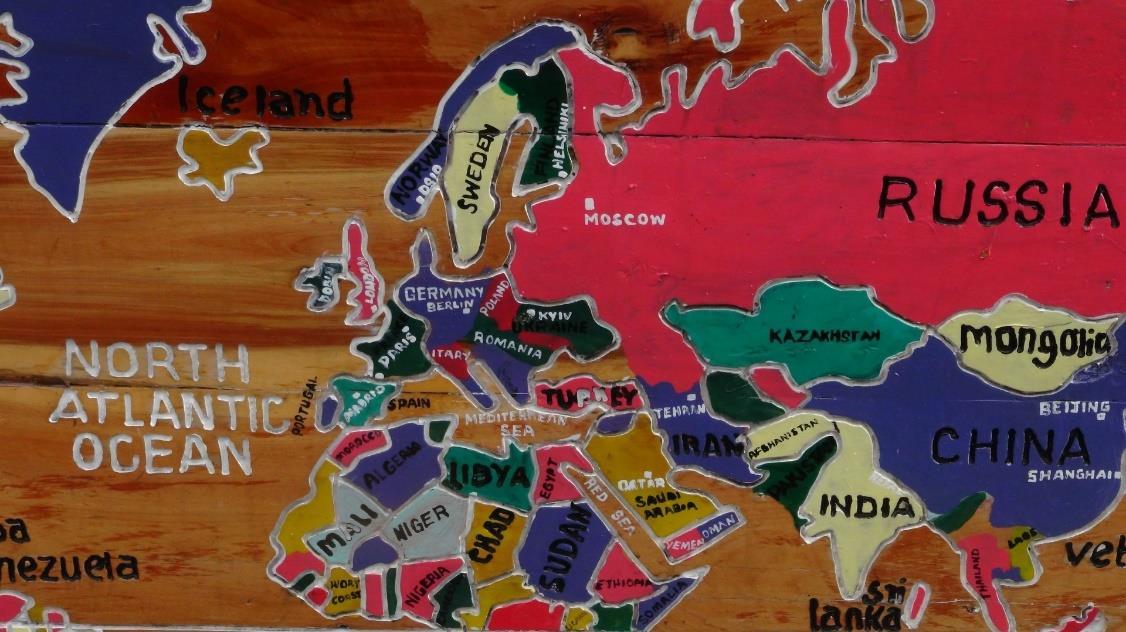 Na přístupové lávce, kde je i plošina na krmení ptáků, je tato mapa světa