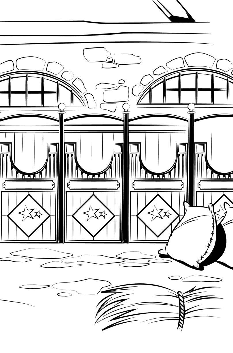 „Nevím, proč jsem sem dneska musela,“ stěžovala si dál ze zadní sedačky Ella. „Vždyť ani nemám koně ráda!“ Vepředu ale Olivie svou starší sestru vůbec neposlouchala. Naprosto ji fascinovaly kamenné domy porostlé břečťanem, které viděla před sebou a nad nimiž visel nápis: