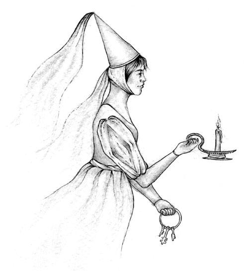 Byla to bílá paní v průvodu skřítků. Paní zvedla ruku a přísně rytíři pohrozila. Pak zmizela ve stěně komnaty. Skřítci ale zůstali dál! Dvanáct jich přineslo mísu, ze které se kouřilo. Třináctý usedl vedle rytíře, vytáhl lžíci, nabral kaši… Ale jaká to byla kaše! Mouka s kolomazí, a navíc pořádně horká!
