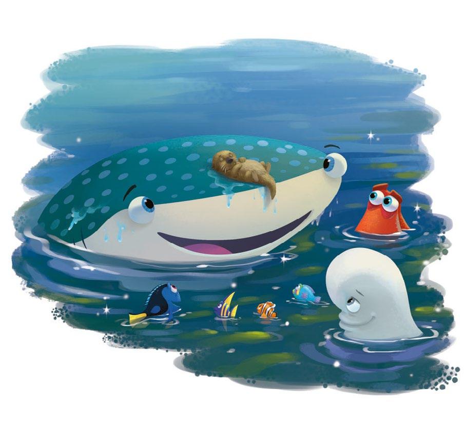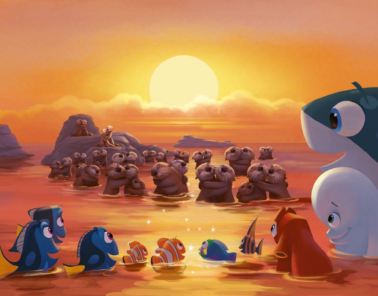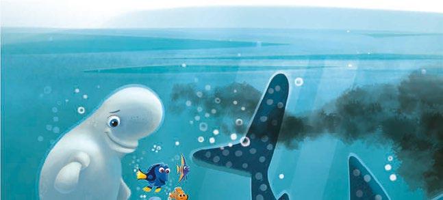 „Viete, kto vie najlepšie objať na svete?“ opýtala sa Dory a vôbec nečakala na odpoveď. „Nemo! Ktovie, ako sa má? Idem ho pohľadať,“ povedala rodičom. Zamávala plutvičkou a odplávala hľadať kamaráta.