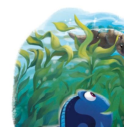 Dory plávala medzi tmavozelenými riasami. Zrazu zbadala Nema, ako sa hrá na schovávačku s dvomi novými kamarátmi.