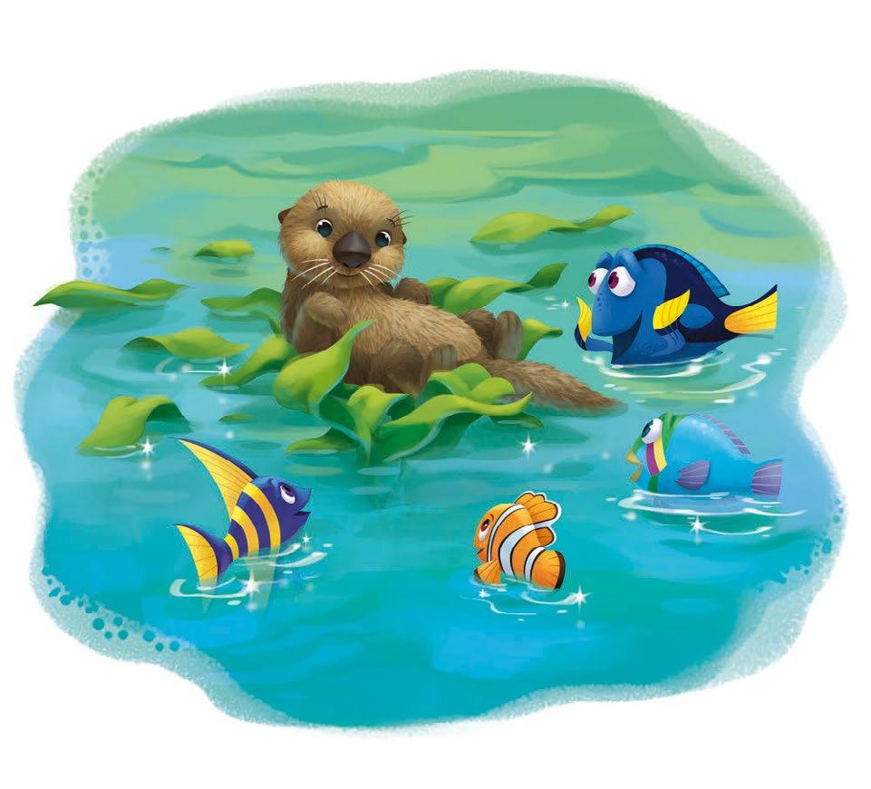 Nemo aj s kamarátmi znova odplávali. Vydrie mláďa sa vymotalo z morských chalúh a s čľupnutím sa ponorilo do vody. Už sa nevedelo dočkať, kedy sa schová.