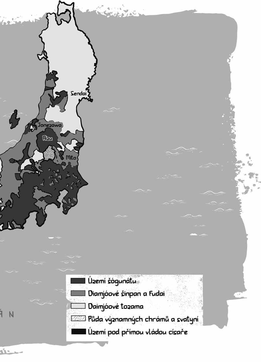 tak vzhledem ke skutečnosti, že tato skupina daimjóů vděčila za své postavení a bohatství přízni Tokugawů, s jejichž osudem tak byla spojena i jejich vlastní budoucnost. Na jejich loajalitu tak bylo možné se spolehnout a vzhledem k jejich svázanosti s rodem Tokugawa je bylo možné pověřovat i těmi nejvýznamnějšími úkoly.64 Mezi ně patřilo dohlížení na potenciální nepřátele. Jejich území (celkem asi třetina pozemkové držby) tak byla rozptýlena po celé zemi. Některé z těchto domén tvořily jakési nárazníkové pásmo mezi územím šógunátu a jeho potenciálními nepřáteli, jiné zas byly vklíněny mezi panství nespolehlivých pánů, jež tak drželi pod kontrolou. Fudai patřili k hlavním oporám vládnoucího režimu, který se na ně spoléhal.65