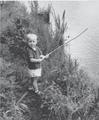 Autor coby dvouletý capart loví podomácku udělanou rákoskou.