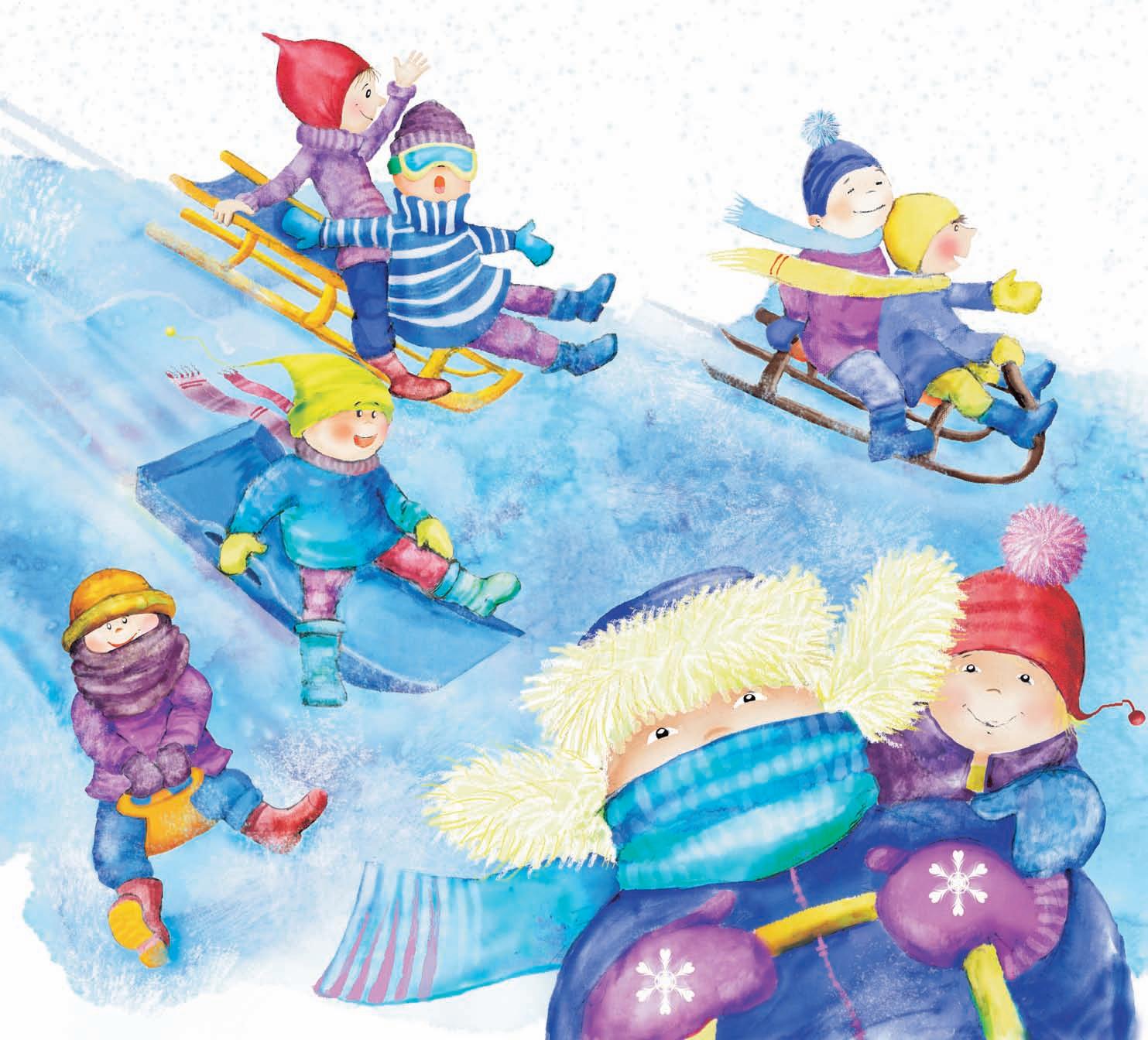 Kluci celý den sáňkovali na stráni.