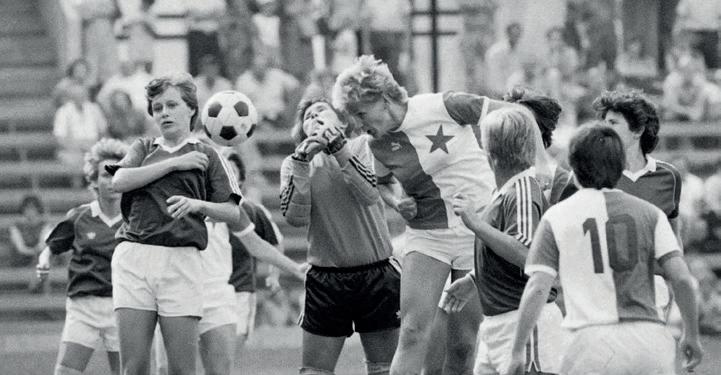 Nijak ji nešetřili. Po dešti bývalo hřiště hodně záludné, míč těžký, až nebezpečný. „Jeden kluk, takový řimbaba, balon napral a já dostala ránu do obličeje,“ vybavuje si nepříjemný okamžik. „Vyskočila jsem, padla, chvíli byla bez sebe. Pak se otřepala a hrála dál,“ nehleděla na utržené šrámy. Nevěděla, že se zoceluje pro pozici stopera prvoligového týmu.
