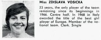 Nechyběla na dalším vydání v roce 1970, i když jako hodně mladé kůzle moc příležitostí ukázat se na hřišti ještě nedostala. Přesto se jí zapsal nesmazatelně do paměti. „Odjížděly jsme ze Slavie, já, mladá holka vyvalená, přímo střevo, jsem při příjezdu do Rožnova zjistila, že nemám tašku. Nechala