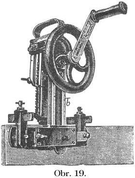 Jesttovprvéřaděstrojkuzadlabávánírohovníku.(Obr.18.)Tatoprácejestve− licezdlouhaváamrzutá,aprotobudeasitentostrojmnohémumistruvítaným.Za− cházenísnímjestvelmijednoduché.Počínámesitakto:Položivšeokenníkřídlo fa1cemnahoru,přitáhnemejepákou a. Taktopřipevněnékřídloposunemepovole nímaopětnýmpřitaženímkřídlovématky,kteráumístěnajestpoddeskoustolu tak daleko, by se výkružník (Freser) zavrtal do prostřed dřeva. 22Zámečnictví