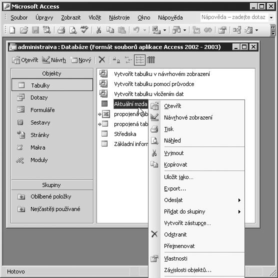 Obr. 1.4: Místní nabídka v prostředí Accessu