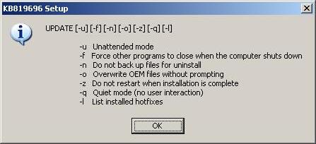 Služba SUS je pom ě rn ě zajímavým po č inem, ale bohužel na ni v této knize nezbývá místo. Poj ď me si proto spíše ukázat, jak instalovat záplaty automatizovan ě pomocí dávky. I když je doporu č eno instalovat záplaty odd ě len ě a pokaždé restartovat systém a zkontrolovat stav serveru, je tohle pom ě rn ě dost nepraktické v p ř ípad ě nov ě nainstalovaného serveru, na kterém nejsou prozatím žádná produk č ní data. Zde je lepší si záplaty seskupit do jednoho adresá ř e a spustit je pomocí dávky tak, aby se systém nerestartoval po instalaci každé z nich. To lze zajistit p ř epína č em -z , který po instalaci záplaty potla č í restart opera č ního systému. Dále je vhodné celou instalaci automatizovat p ř epína č em -u (u Windows 2000 -m ), abychom nemuseli procházet jednotlivé obrazovky pr ů vodce instalace záplaty.