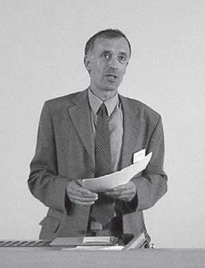 Obr. 2.5 Prof. Ing. J. Veber z Vysoké školy ekonomické v Praze referuje o důsledcích společensko-ekonomických změn pro management podniků na konferenci v Brně (červen 2004).