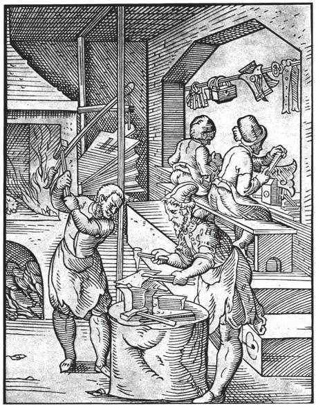 obrázek 1 Práce v kovářské dílně narytině z doby kolem roku 1550