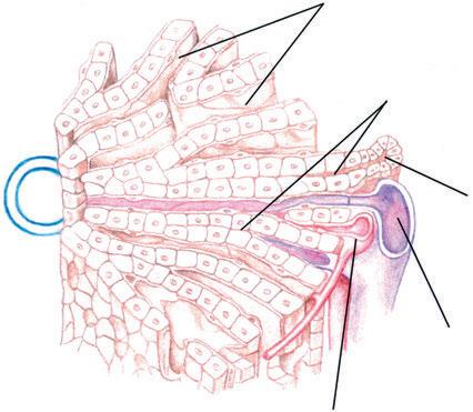 ¾ Vzhledem k funkční heterogenitě hepatocytů je opodstatněné posuzovat uspořádání jaterní tkáně s ohledem na přívodné cévy, a považovat tak za základní funkční jednotku jater portální acinus.