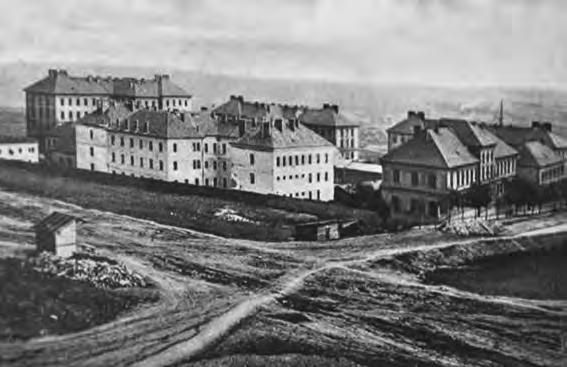 5 Roháčovy kasárna v době před vznikem Nových Vršovic – pohled od dnešní Ruské třídy od severozápadu (https://www.valka.cz/Praha-Vrsovicke-pechotni-kasarny-t120069)