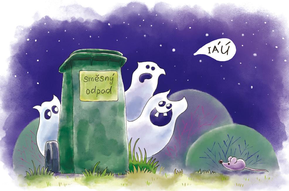 „Jak se to vezme,“ odpověděl neurčitě vousatý muž, odložil svůj koš s odpadky a hlubokým hlasem řekl: „Abrakadabra!“ Pak otevřel víko žluté popelnice a během chvilky z ní vyskočila kočka. Nebo kocour. V té rychlosti se to nedalo poznat. „Když budou všichni kontejnery zavírat, tak se tam žádné strašidlo nedostane,“ zabrblal si muž pod vousy a vysypal odpadky.