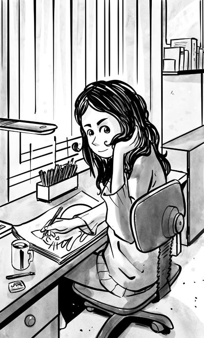 možná na osm a půl. Majda se pobaveně ušklíbla a konečně jí bylo trochu líp. Vrátila se ke kresbě, ty oči budou fakt chtít předělat. Opatrně se pustila do gumování, naštěstí se už naučila začít nejdřív tužkou, a až když je s výsledkem spokojená, obtáhne to pastelkou nebo fixou. Tužka je pod obrysem stejně trochu vidět, ale lepší než to mít rovnou zkažený.