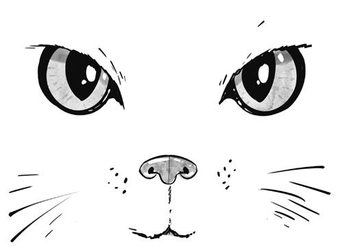 Nakonec se to povedlo. Krásná trojbarevná kočka, velká jako ve skutečnosti, teda skoro. Oči jí Majda udělala žlutozelené a nad jedním byl zrzavý flíček. Kočka ležela, jako by se právě uvelebila ke spaní, to měla Majda promyšlené, aby se jí pak líp vystřihovala. Z tvrdého papíru, co se jen tak nepomačká.