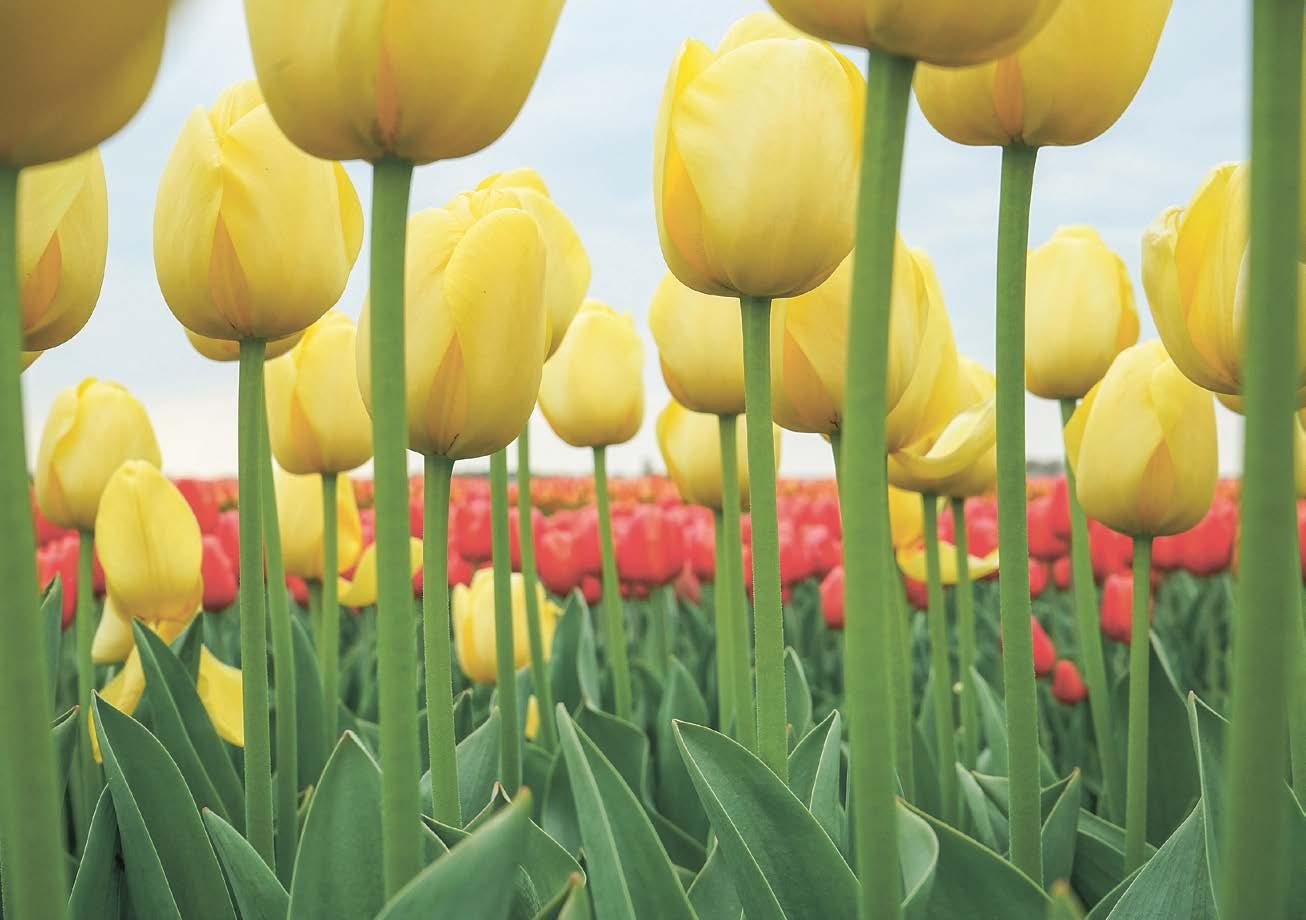 Nahoře: Nizozemsko, tulipánová pole u městečka Lisse